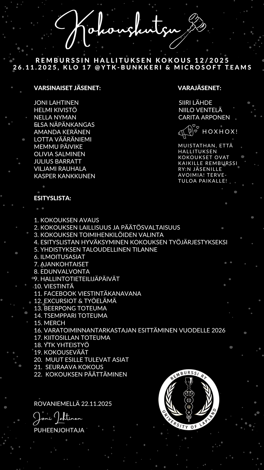 Hallitus kokoustaa seuraavan kerran 26.11.2025 klo 17. Tutustu esityslistaan tästä: