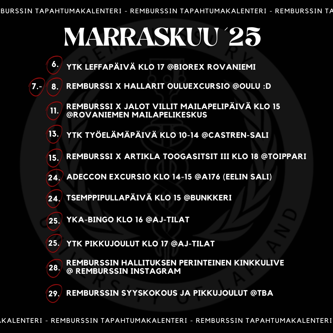 Tapahtumakalenteri elää jatkuvasti ja muutokset tapahtumien ajankohtiin mahdollisia.